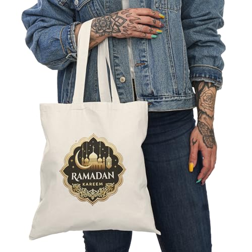 Generic - Tote Bag - شنطة قماش بسوستة – بتصميم "رمضان كريم" إسلامي راقٍ لشهر رمضان – شنطة خروج وتسوق مطبوعة – خفيفة ومتينة وصديقة للبيئة مناسبة للهدايا والجامعة