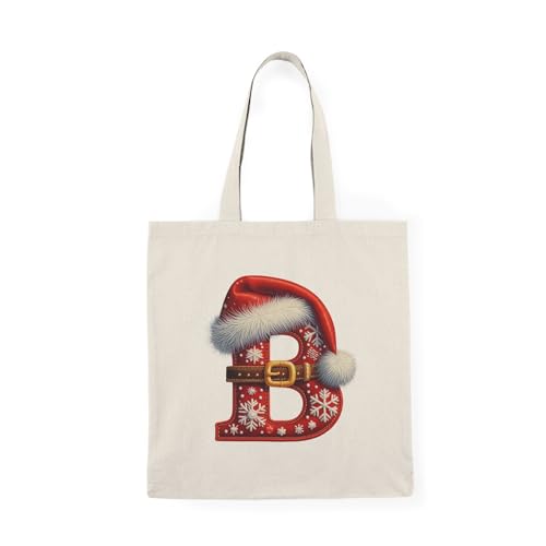 Generic - Tote Bag - شنطة قماش بسوستة – بحرف B بتصميم كريسماس – حرف B مزين بقبعة سانتا وحزام عيد الميلاد – شنطة خروج وتسوق مطبوعة – خفيفة ومتينة وصديقة للبيئة مناسبة للهدايا والجامعة