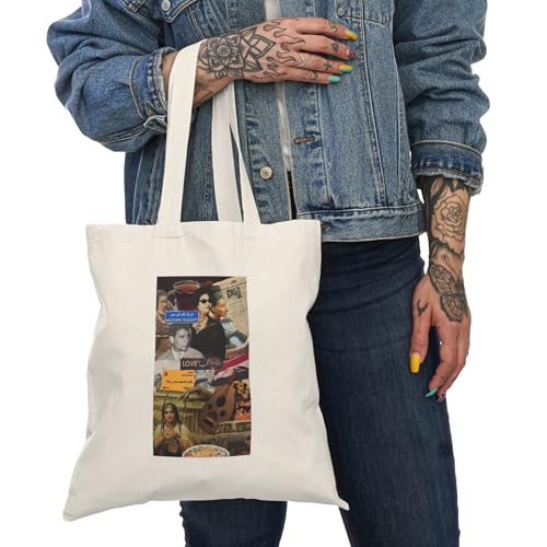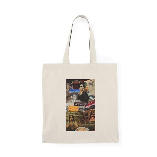 Generic - Tote Bag – شنطة قماش بسحاب - تصميم "كولاج شارع الحب - الروح المصرية" - تصميم فني يجمع أم كلثوم، نفرتيتي، والجمال الشعبي – حقيبة واسعة وخفيفة للتسوق اليومية