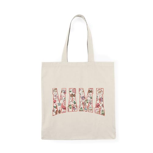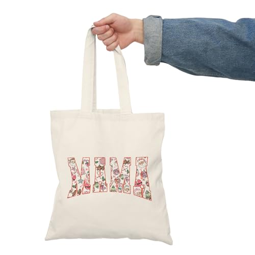 Generic - Tote Bag - شنطة قماش بسوستة – تصميم بكلمة MAMA بتصميم الكريسماس وبابا نويل والحلوى هدية حب للأم – شنطة خروج وتسوق مطبوعة – خفيفة ومتينة وصديقة للبيئة مناسبة للهدايا والجامعة