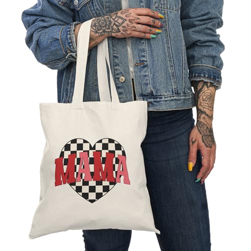 Generic - Tote Bag - شنطة قماش بسوستة – تصميم بكلمة MAMA مع قلب هدية حب للأم – شنطة خروج وتسوق مطبوعة – خفيفة ومتينة وصديقة للبيئة مناسبة للهدايا والجامعة