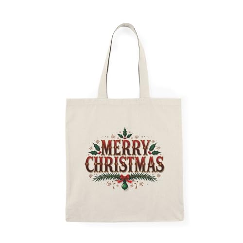 Generic - Tote Bag - شنطة قماش بسوستة – بتصميم Merry Christmas – تصميم كريسماس لطيف للهدايا والمناسبات – شنطة خروج وتسوق مطبوعة – خفيفة ومتينة وصديقة للبيئة مناسبة للهدايا والجامعة