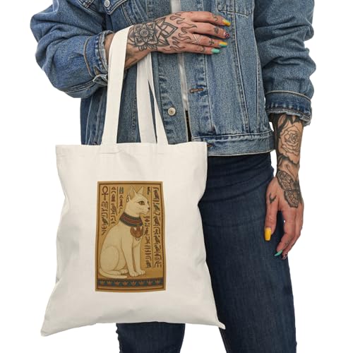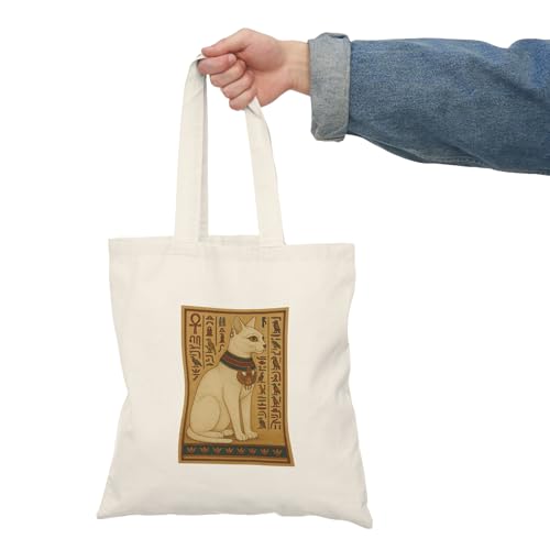 Generic - Tote Bag - شنطة قماش بسوستة – بتصميم القطة الفرعونية – فن مصر القديمة – شنطة خروج وتسوق مطبوعة – خفيفة ومتينة وصديقة للبيئة مناسبة للهدايا والجامعة