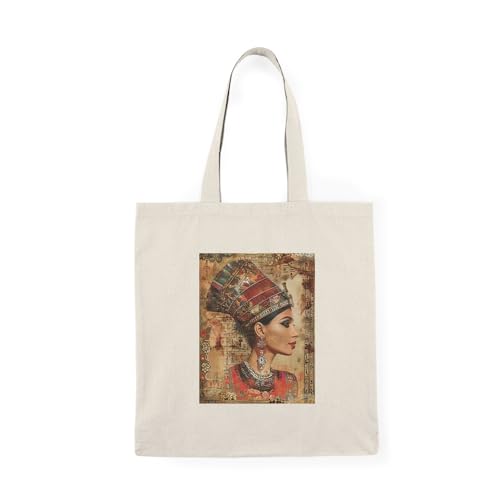 Generic - Tote Bag - شنطة قماش بسوستة – تصميم لملكة فرعونية - تصميم بطابع الحضارة المصرية – شنطة خروج وتسوق مطبوعة – خفيفة ومتينة وصديقة للبيئة مناسبة للهدايا والجامعة
