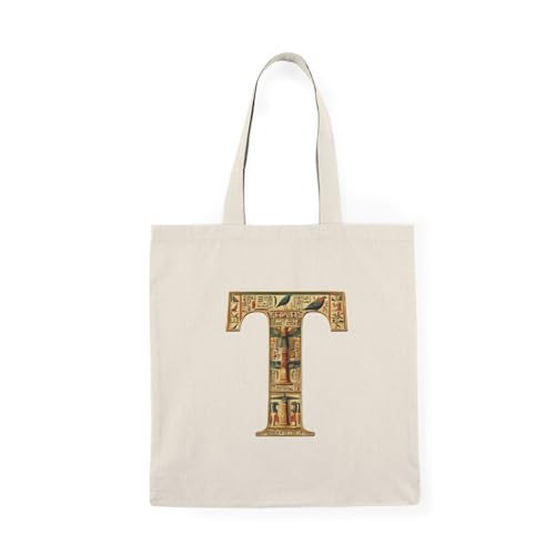 Generic - Tote Bag - شنطة قماش بسوستة – بحرف T بتصميم فراعنة – حقيبة توت قماشية بطابع مصري قديم – شنطة خروج وتسوق مطبوعة – خفيفة ومتينة وصديقة للبيئة مناسبة للهدايا والجامعة
