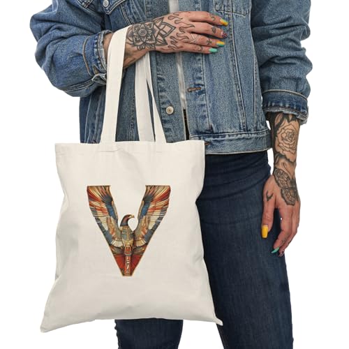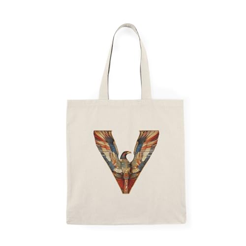Generic - Tote Bag - شنطة قماش بسوستة – بحرف V بتصميم فراعنة – حقيبة توت قماشية بطابع مصري قديم – شنطة خروج وتسوق مطبوعة – خفيفة ومتينة وصديقة للبيئة مناسبة للهدايا والجامعة