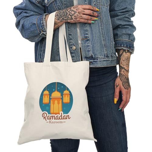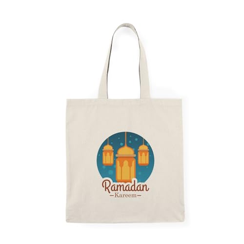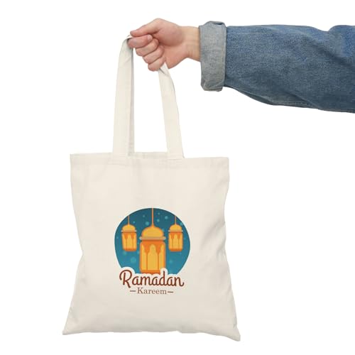Generic - Tote Bag – شنطة قماش بسحاب - "رمضان كريم" - تصميم فوانيس ذهبية لهديا شهر رمضان المبارك – واسعة وخفيفة للتسوق اليومية – حقيبة عملية صديقة للبيئة وقابلة لإعادة الاستخدام