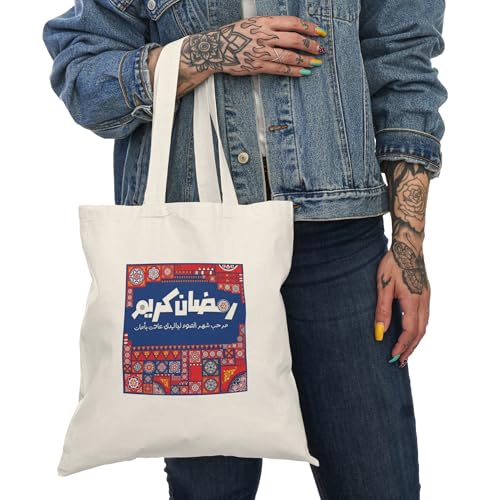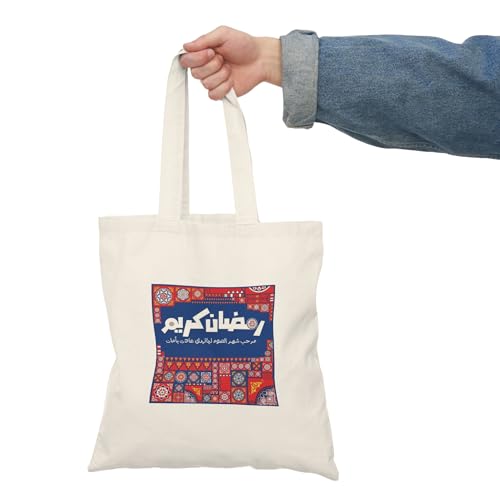 Generic - Tote Bag – شنطة قماش بسحاب - "رمضان كريم" - تصميم رمضاني اسلامي لهديا شهر رمضان المبارك – واسعة وخفيفة للتسوق اليومية – حقيبة عملية صديقة للبيئة وقابلة لإعادة الاستخدام