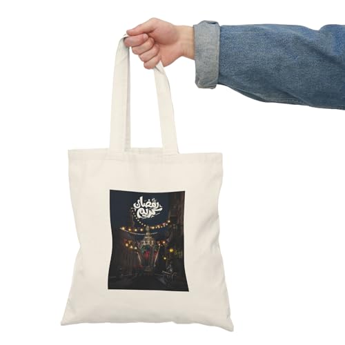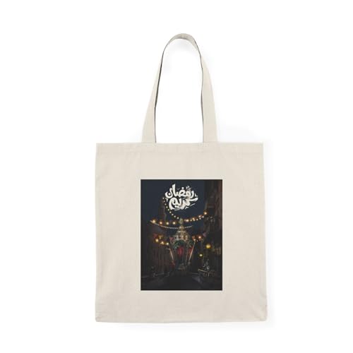 Generic - Tote Bag – شنطة قماش بسحاب - "رمضان كريم" - تصميم فانوس وزينة الشوارع المضيئة لرمضان – شنطة واسعة وخفيفة للتسوق اليومية – حقيبة عملية صديقة للبيئة وقابلة لإعادة الاستخدام