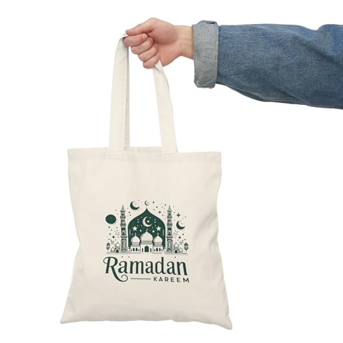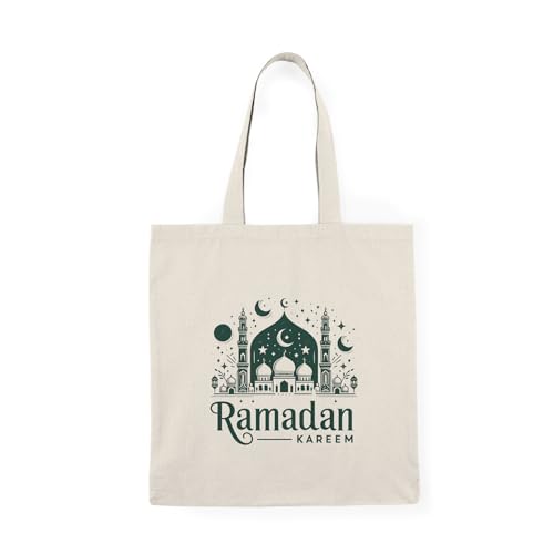 Generic - Tote Bag - شنطة قماش بسوستة – بتصميم "رمضان كريم" بتصميم المساجد والنجوم المتلألئة هدية لشهر رمضان – شنطة خروج وتسوق مطبوعة – خفيفة ومتينة وصديقة للبيئة مناسبة للهدايا والجامعة