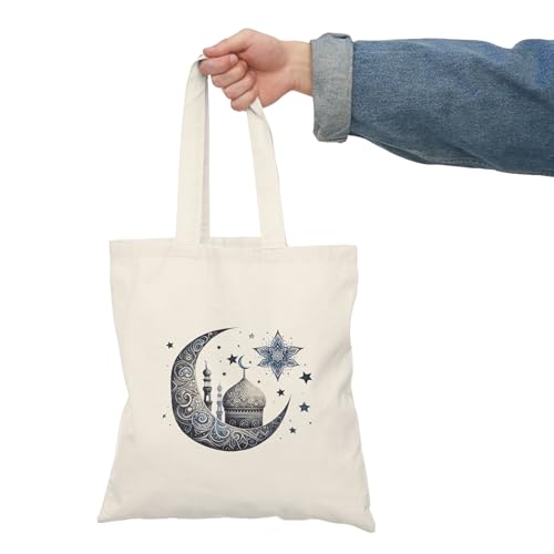 Generic - Tote Bag - شنطة قماش بسوستة – "رمضان كريم" بتصميم الهلال والزخارف الإسلامية لشهر رمضان – شنطة خروج وتسوق مطبوعة – خفيفة ومتينة وصديقة للبيئة مناسبة للهدايا والجامعة