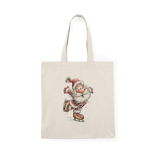Generic - Tote Bag - شنطة قماش بسوستة – بتصميم سانتا كلوزالمتزحلق – تصميم كريسماس لطيف ومبهج – شنطة خروج وتسوق مطبوعة – خفيفة ومتينة وصديقة للبيئة مناسبة للهدايا والجامعة
