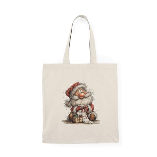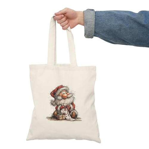 Generic - Tote Bag - شنطة قماش بسوستة – بتصميم سانتا كلوز مع هدية – تصميم كريسماس لطيف للهدايا والمناسبات – شنطة خروج وتسوق مطبوعة – خفيفة ومتينة وصديقة للبيئة مناسبة للهدايا والجامعة