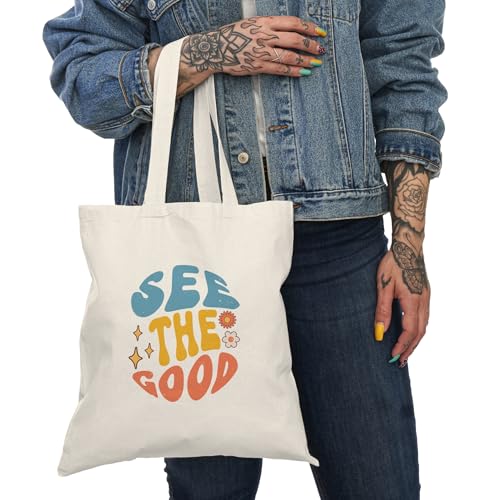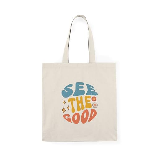 Generic - Tote Bag – شنطة قماش بسحاب - تصميم "See The Good" - تصميم ريترو إيجابي هدية تحفيزية – حقيبة واسعة وخفيفة للتسوق اليومية