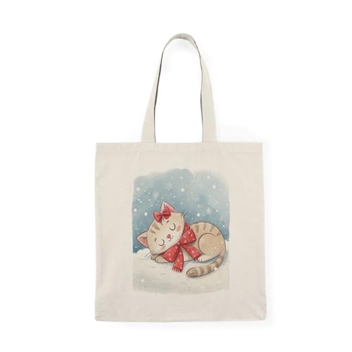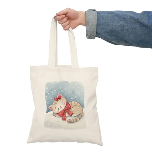 Generic - Tote Bag - شنطة قماش بسوستة – بتصميم قطة الشتاء النائمة – تصميم لطيف للهدايا والمناسبات – شنطة خروج وتسوق مطبوعة – خفيفة ومتينة وصديقة للبيئة مناسبة للهدايا والجامعة