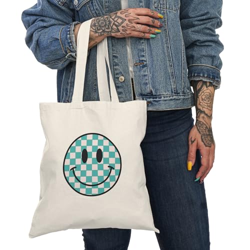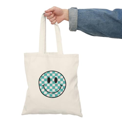 Generic - Tote Bag - شنطة قماش بسوستة – بتصميم سمايلي تشيكر أخضر – شنطة خروج وتسوق مطبوعة – خفيفة ومتينة وصديقة للبيئة مناسبة للهدايا والجامعة
