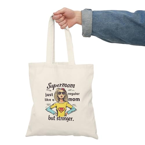 Generic - Tote Bag – شنطة قماش بسحاب - تصميم "سوبر ماما" - تصميم بطلة خارقة بستايل مودرن – شنطة كتف قطنية هدية ممتعة للأم القوية والمكافحة هدية عيد الأم حقيبة واسعة وعملية