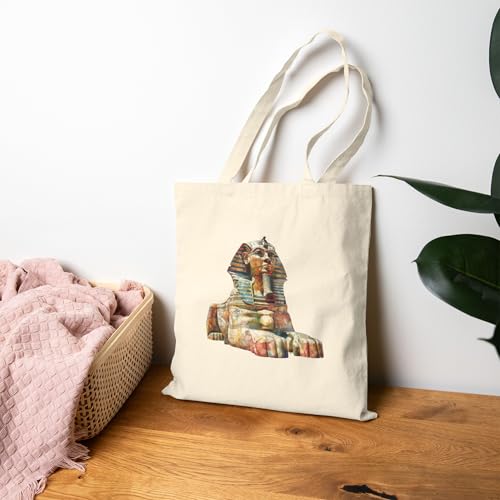 Generic - شنطة توت قماشية بسحاب بتصميم فريد من نوعه على شكل ابو الهول بالوان مميزة حديثة، شنطة فرعونية - شنطة تسوق صديقة للبيئة