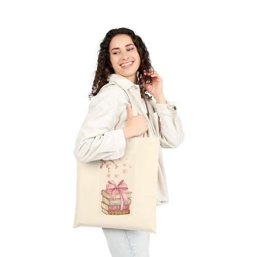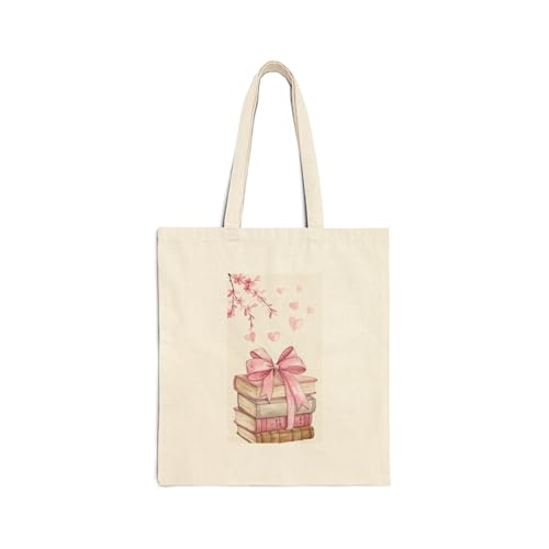 Generic - Tote Bag - حقيبة قماشية بسوسته بتصميم كتب وفيونكة وردية - شنطة كانفاس لمحبي القراءة والكتب - حقيبة جمالية رقيقة.