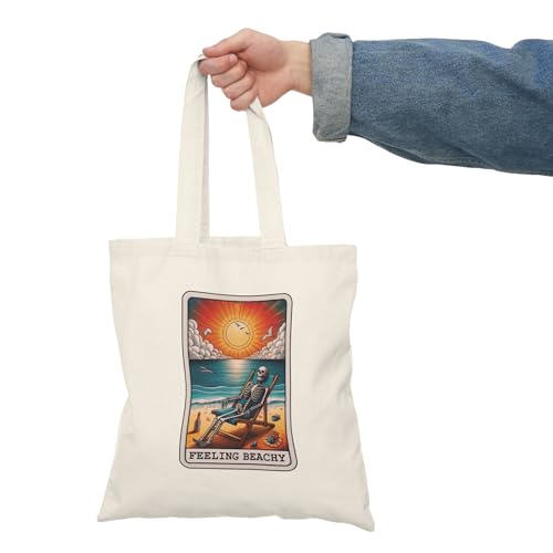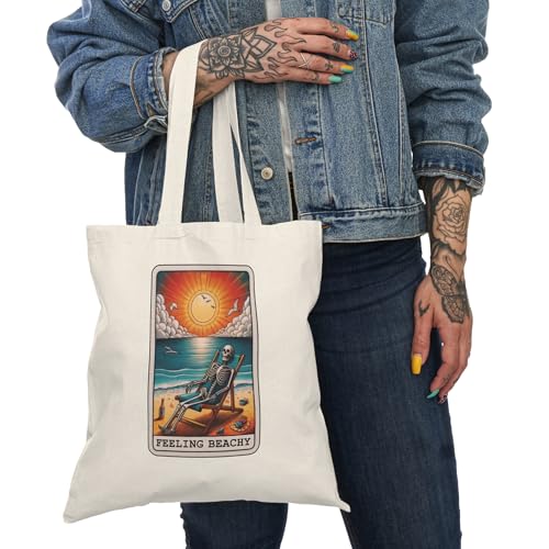 Generic - حقيبة يد قماشية بسحاب - حقيبة قماشية بسحاب مضحك للصيف هيكل عظمي تاروت بطاقة الشعور حقيبة الشاطئ