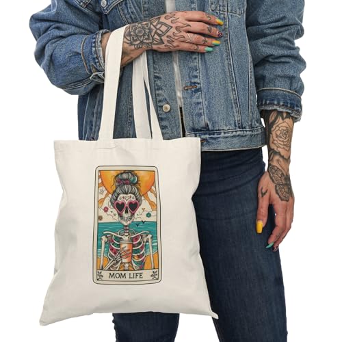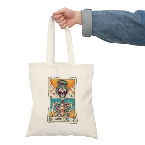 Generic - حقيبة يد قماشية بسحاب - حقيبة قماشية بسحاب مضحكة للصيف بتصميم هيكل عظمي وبطاقة التاروت للأم