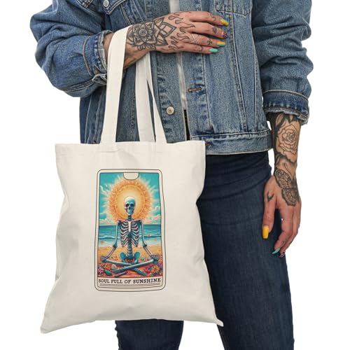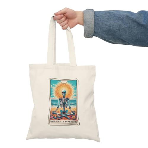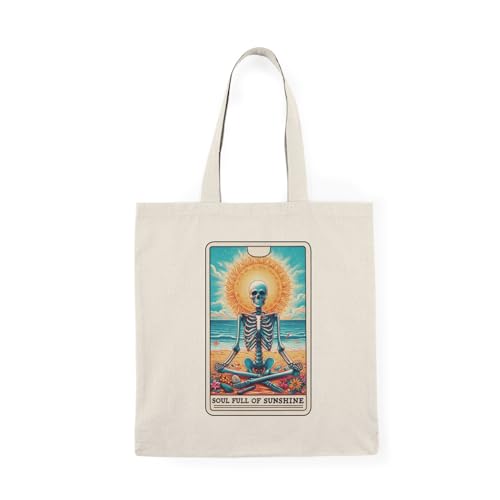 Generic - حقيبة يد قماشية بسحاب - حقيبة قماشية بسحاب مضحك للصيف هيكل عظمي تاروت بطاقة الروح مليئة بالشمس المشرقة