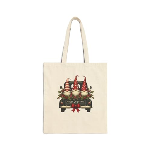 Generic - Tote Bag - حقيبة قماشية بسوسته بتصميم اقزام الكريسماس والشاحنة- حقيبة يد صديقة للبيئة للتسوق والجامعة - شنطة تسوق متينة وخفيفة الوزن