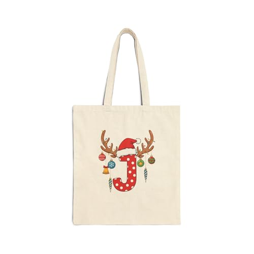 Generic - Tote Bag - حقيبة قماشية بسوسته بتصميم حرف J الكريسماس - حقيبة يد صديقة للبيئة للتسوق والجامعة - شنطة تسوق متينة وخفيفة الوزن
