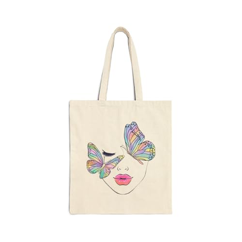 Generic - Tote Bag - حقيبة قماشية بسوسته بتصميم فني لوجه وفراشات ملونة - Aesthetic Butterfly Face Tote Bag - شنطة كتف كانفاس بتصميم مودرن، مثالية للجامعة، التسوق، وهدايا البنات.