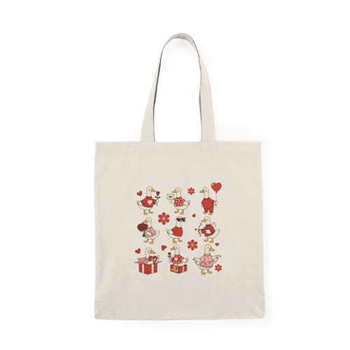 Generic - Tote Bag – شنطة قماش بسحاب تصميم البط اللطيف – رسومات كرتونية مبهجة لهدايا الحب والمناسبات السعيدة – شنطة واسعة وخفيفة للتسوق اليومية – حقيبة عملية صديقة للبيئة وقابلة لإعادة الاستخدام – حقيبة قماش