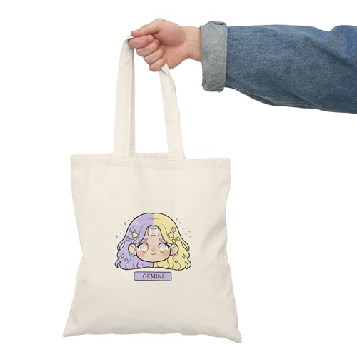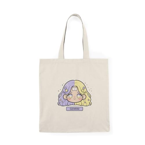 Generic - Tote Bag – شنطة قماش بسحاب بتصميم كرتوني برج الجوزاء كيوت – شنطة واسعة وخفيفة للتسوق اليومية – حقيبة عملية صديقة للبيئة وقابلة لإعادة الاستخدام – حقيبة قماش