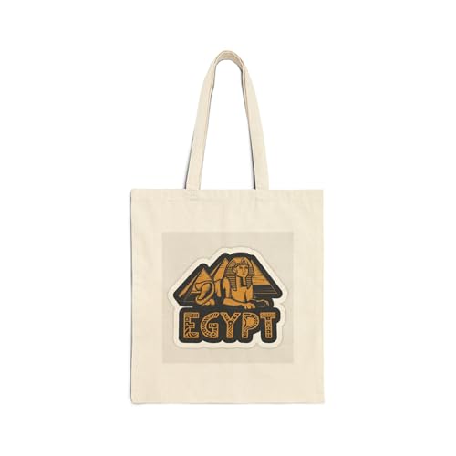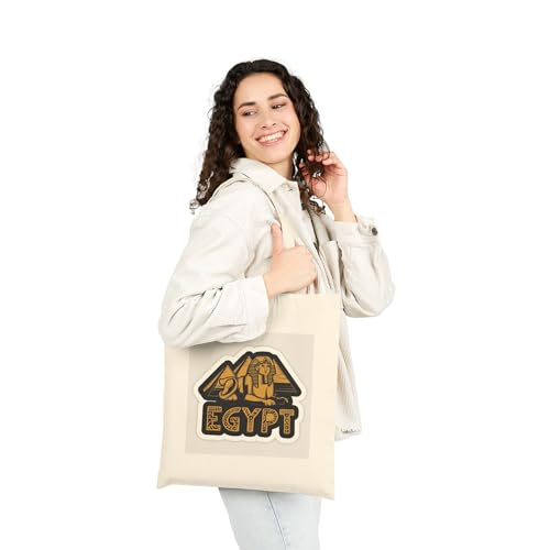 Generic - Tote Bag - حقيبة قماشية بسوسته بتصميم شعار "EGYPT" العصري مع الأهرامات وأبو الهول - شنطة كتف قطنية لهدايا تذكارية وتاريخية، أبيض كريمي متين وعصري.