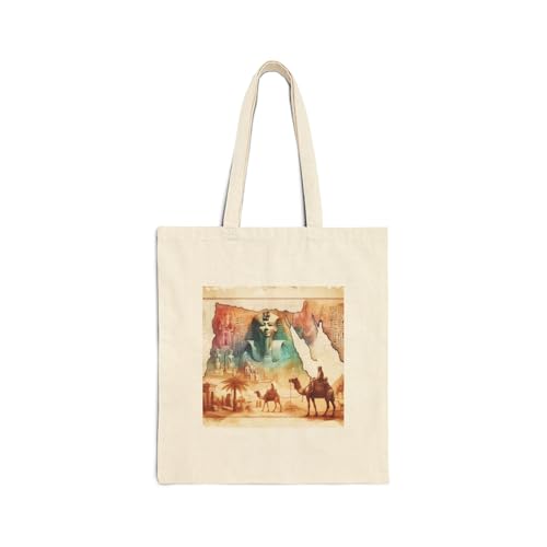 Generic - Tote Bag - حقيبة قماشية بسوسته بتصميم فرعوني مصري – منظر الصحراء والجمال وأبو الهول – حقيبة تسوق قطن قابلة لإعادة الاستخدام – هدية مستوحاة من الحضارة المصرية
