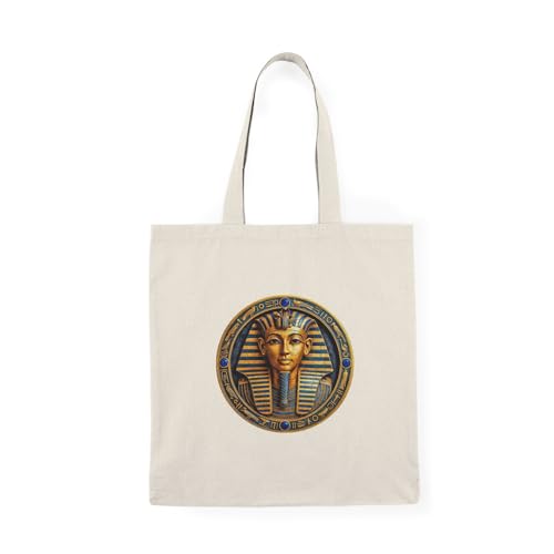 Generic - Tote Bag – شنطة قماش بسحاب بتصميم القناع الفرعوني الذهبي – شنطة توتي واسعة وخفيفة للتسوق اليومية – حقيبة عملية صديقة للبيئة وقابلة لإعادة الاستخدام – حقيبة قماش تراث مصري