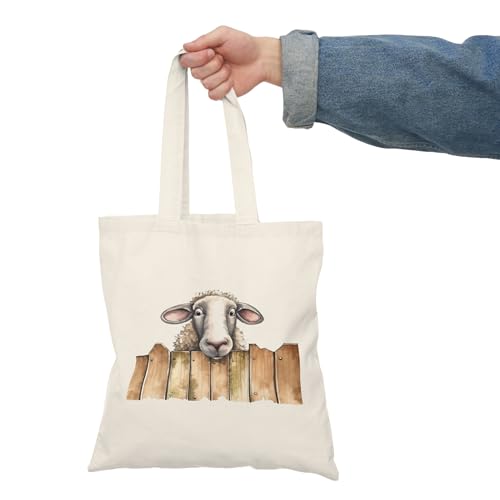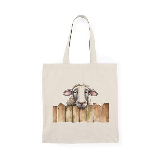 Generic - توتي باج شنطة قماشية بسوسته Heavy Duty Canvas The surprised sheep Tote Bag-21 With Zipper