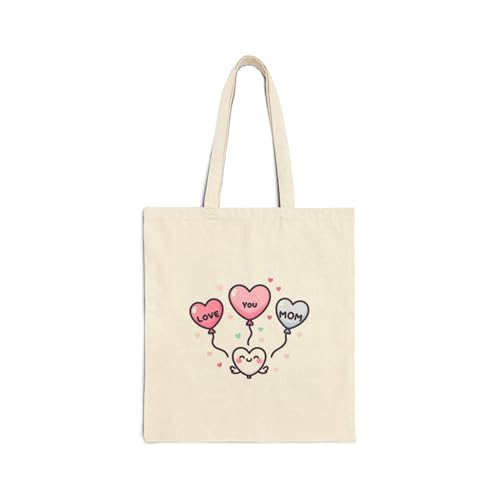 Generic - Tote Bag - حقيبة قماشية بسوسته بتصميم "أحبك يا أمي" - Love You Mom Balloons Tote Bag, هدية لطيفة لعيد الأم، Cute Heart Hearts Design Canvas Bag, حقيبة تسوق مبهجة وعملية.