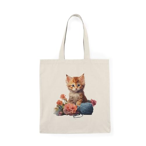 توتي باج - شنطة قماش دك ثقيل Kitten And Knitting Watercolor Clipart Tote Bag-35