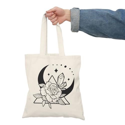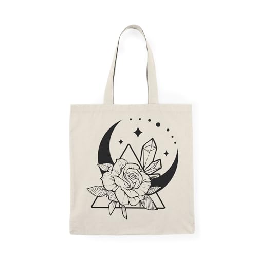 Generic - توتي باج - شنطة قماش دك ثقيل Magic And Celestial "Moon And Flower" Tote Bag