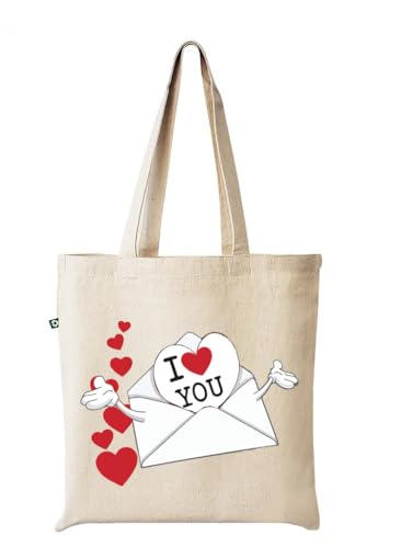 Generic - شنطة يد كبيرة توت بتصميم ظرف I Love You بلون بيج طبيعي
