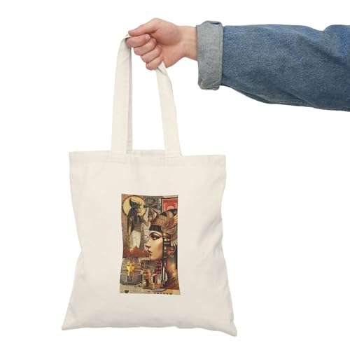 Generic - Tote Bag – شنطة قماش بسحاب كولاج نفرتاري، كليوباترا، والتاج الملكي للحضارة الفرعونية – شنطة واسعة وخفيفة للتسوق اليومية – حقيبة عملية صديقة للبيئة وقابلة لإعادة الاستخدام – حقيبة قماش