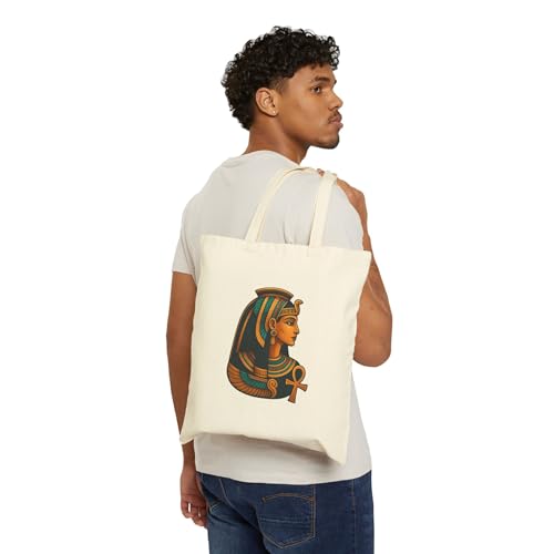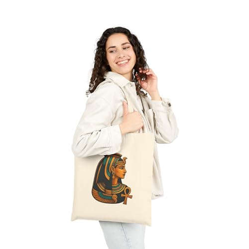 Generic - Tote Bag - حقيبة قماشية بسوسته بتصميم بورتريه للملكة كليوباترا مع رمز مفتاح الحياة (Ankh) - شنطة كتف قطنية فاخرة لهدايا التراث والأناقة، أبيض كريمي متين وعصري.