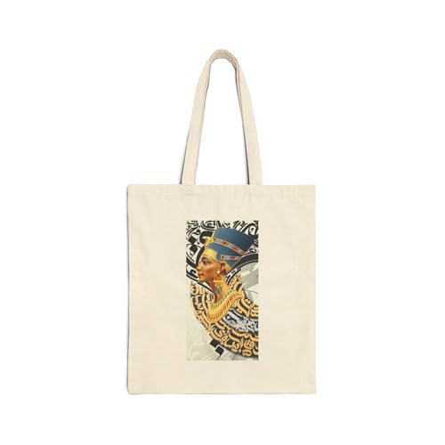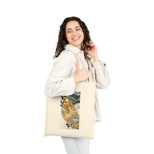 Generic - Tote Bag - حقيبة قماشية بسوسته بتصميم يدمج "الملكة نفرتيتي" مع فن الخط العربي - شنطة كتف قطنية لهدايا عشاق الحضارة واللغة العربية، أبيض كريمي متين وعصري.