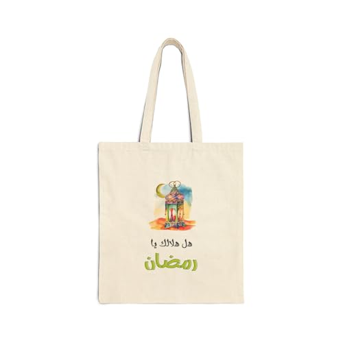 Generic - Tote Bag - حقيبة قماشية بسوسته بتصميم "هل هلالك يا رمضان" - Ramadan Kareem Canvas Tote Bag, Watercolor Lantern Design, Eco-Friendly Islamic Gift Bag - شنطة قماشية لهدايا رمضان والتسوق