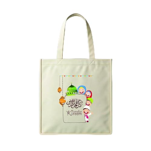 Generic - شنطة يد كبيرة توت - شنطة قماشية بسحاب بتصميم رمضان كريم 6 قطع، شنطة كتف قطنية لهدايا رمضان، ابيض كريمي متينة وعصرية.