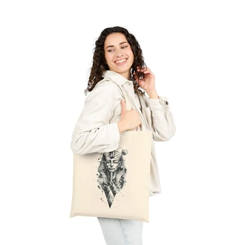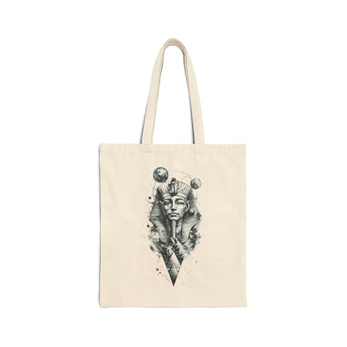 Generic - Tote Bag - حقيبة قماشية بسوسته بتصميم سريالي لفرعون كوني محاط بالكواكب والنجوم - شنطة كتف قطنية لهدايا عشاق الفضاء والفن الغامض، أبيض كريمي متين وعصري.