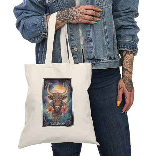 Generic - Tote Bag – شنطة قماش بسحاب بتصميم برج الثور – شنطة واسعة وخفيفة للتسوق اليومية – حقيبة عملية صديقة للبيئة وقابلة لإعادة الاستخدام – حقيبة قماش