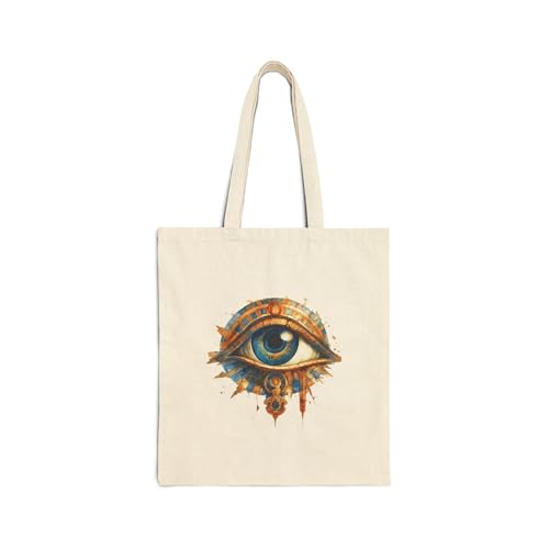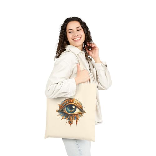 Generic - Tote Bag - حقيبة قماشية بسوسته بتصميم "عين حورس" الفني المزخرف بألوان مائية وتفاصيل ذهبية - شنطة كتف قطنية لهدايا الحماية والقوة، أبيض كريمي متين وعصري.