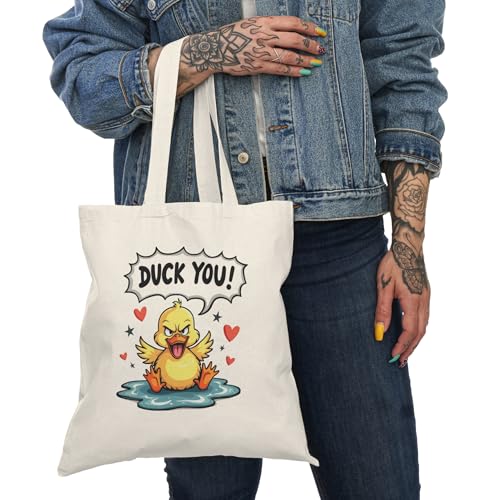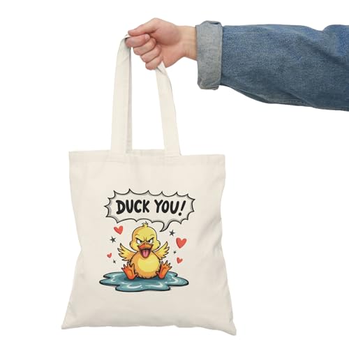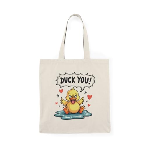 Generic - حقيبة توتس - حقيبة يد قماشية كاجوال بسحاب من القماش بتصميم بطة غاضبة، حقيبة تسوق قطنية صديقة للبيئة بتصميم بطة غاضبة، حقيبة يد قماشية انيقة للاستخدام اليومي مع سحاب - 756