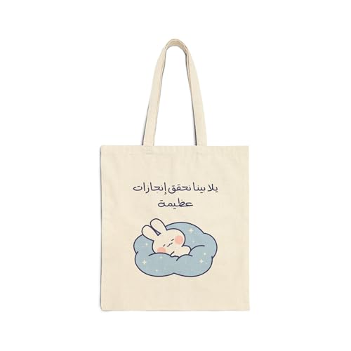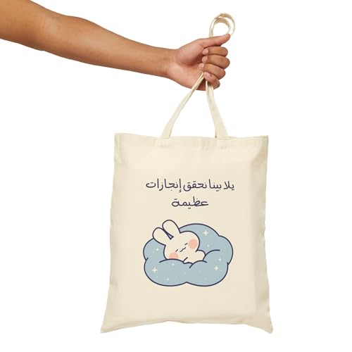 Generic - شنطة توت - شنطة قماشية بسحاب بتصميم ارنب لطيف ليزي يالا بينا تحقق انجازات عظيمة، شنطة قماشية مضحكة للدروس والمدرسة بتصميم ارنب كسول لطيف للدراسة مع سحاب
