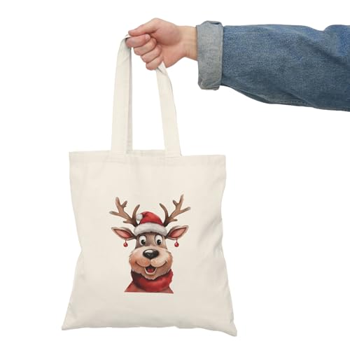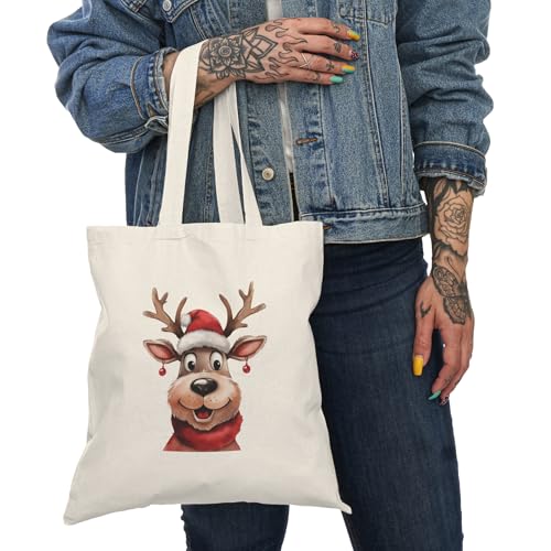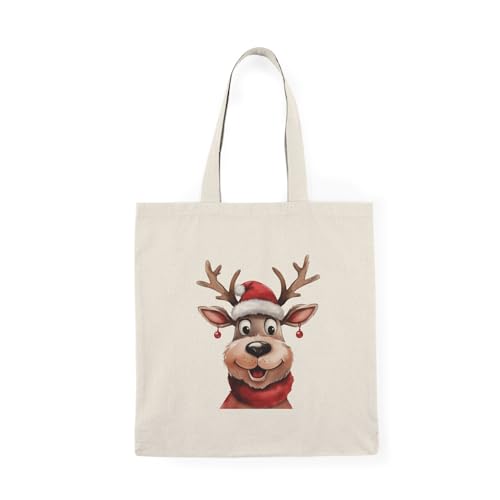 Generic - شنطة توت قماشية بسحاب 140 - شنطة يد كبيرة توت بتصميم سانتا كلوز للكريسماس مع سحاب